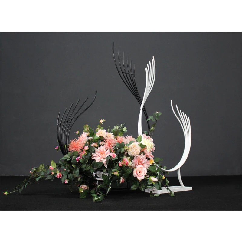 Artificial peacock flowers curved flower arrangement stand Wedding home party road table centerpiec