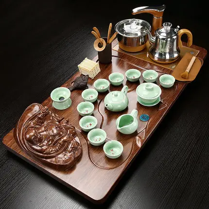 BEST QUALITY Large Number Chinese tea set Home ceramic automatic solid wood tea tray tea ceremony Simple kungfu