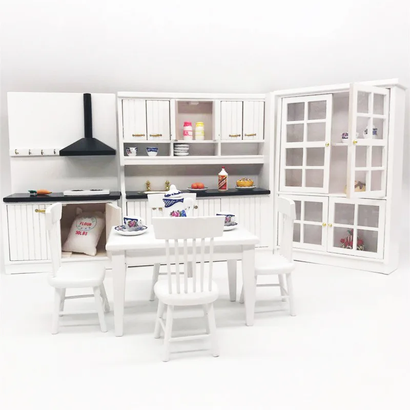 1:12 Wood dollhouse accessories mini kitchen dining table chair cabinet set simulation life model P