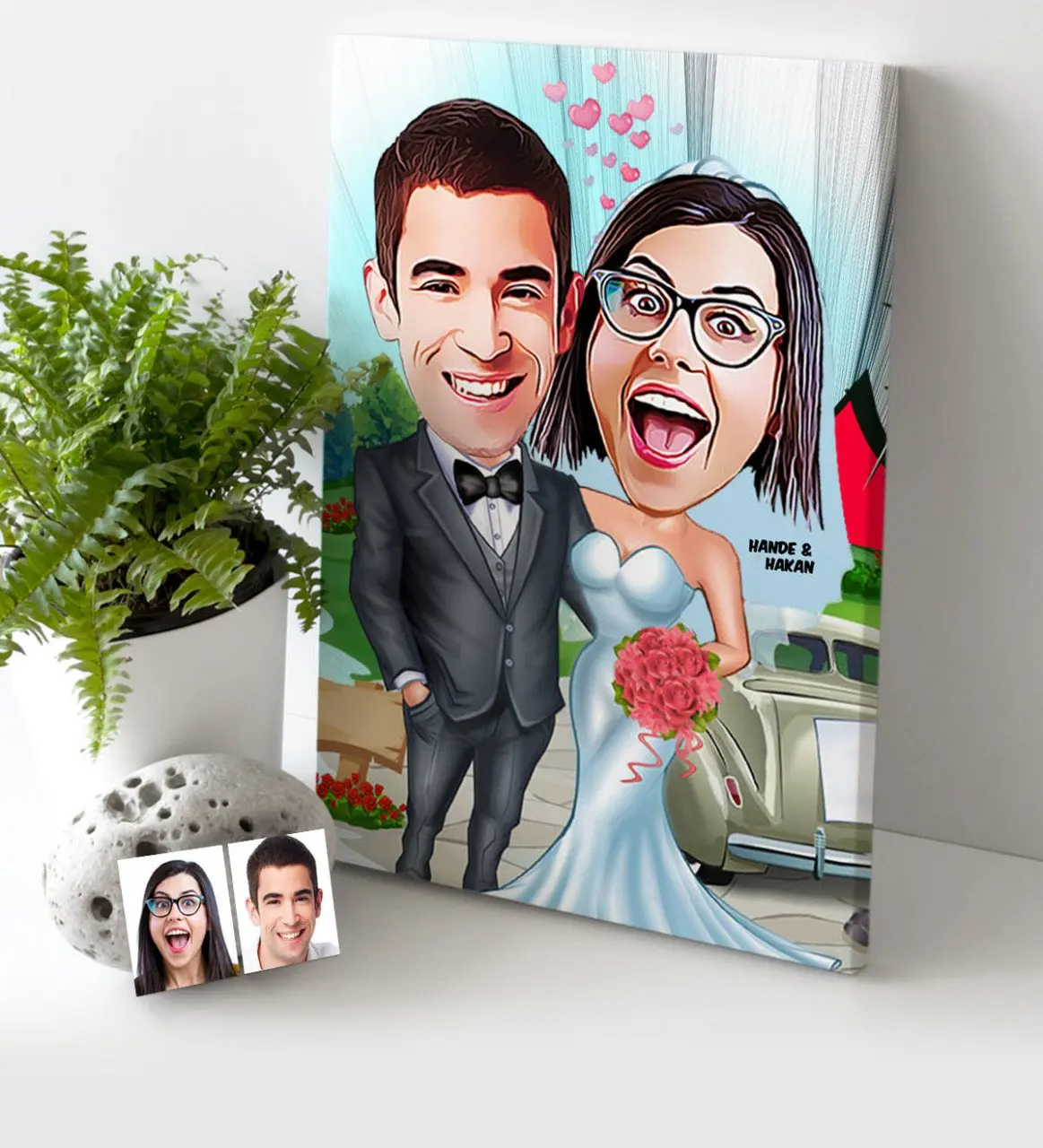 Personalized Bride Groom Cartoon Canvas Table (30x50 cm.) 1