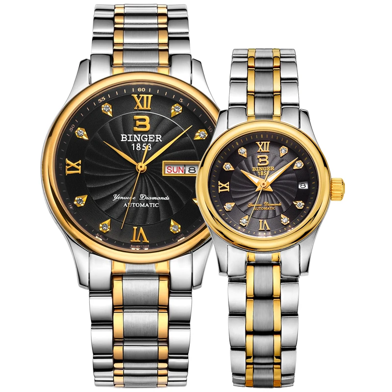 Genuine Switzerland BINGER Brand Men Women Lover couple automatic mechanical self-wind watch full s