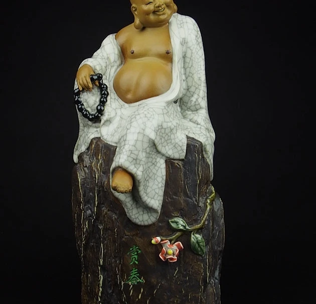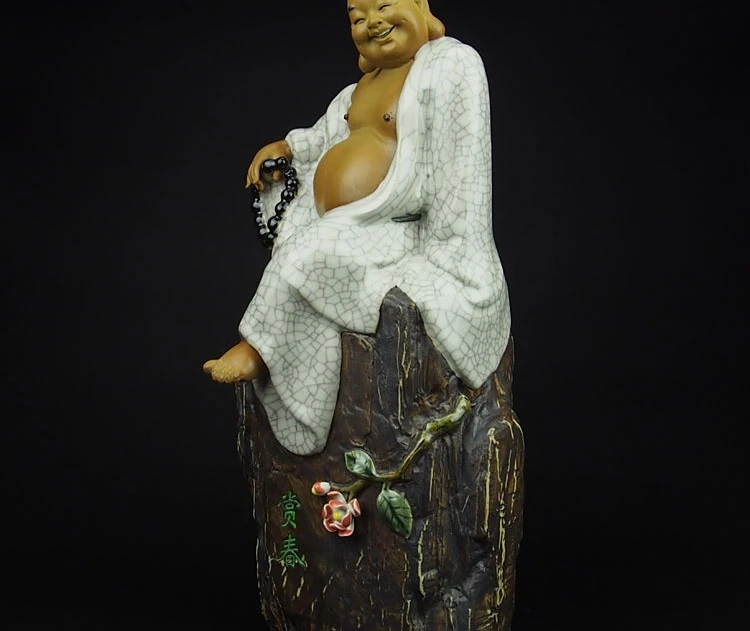 HIGH QUALITY China Pottery Wucai Porcelain Art Sit Stone Happy Maitreya Buddha Spring Statue