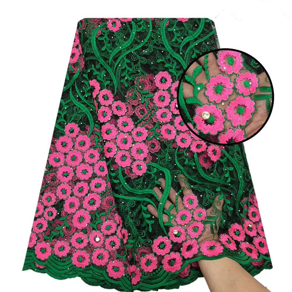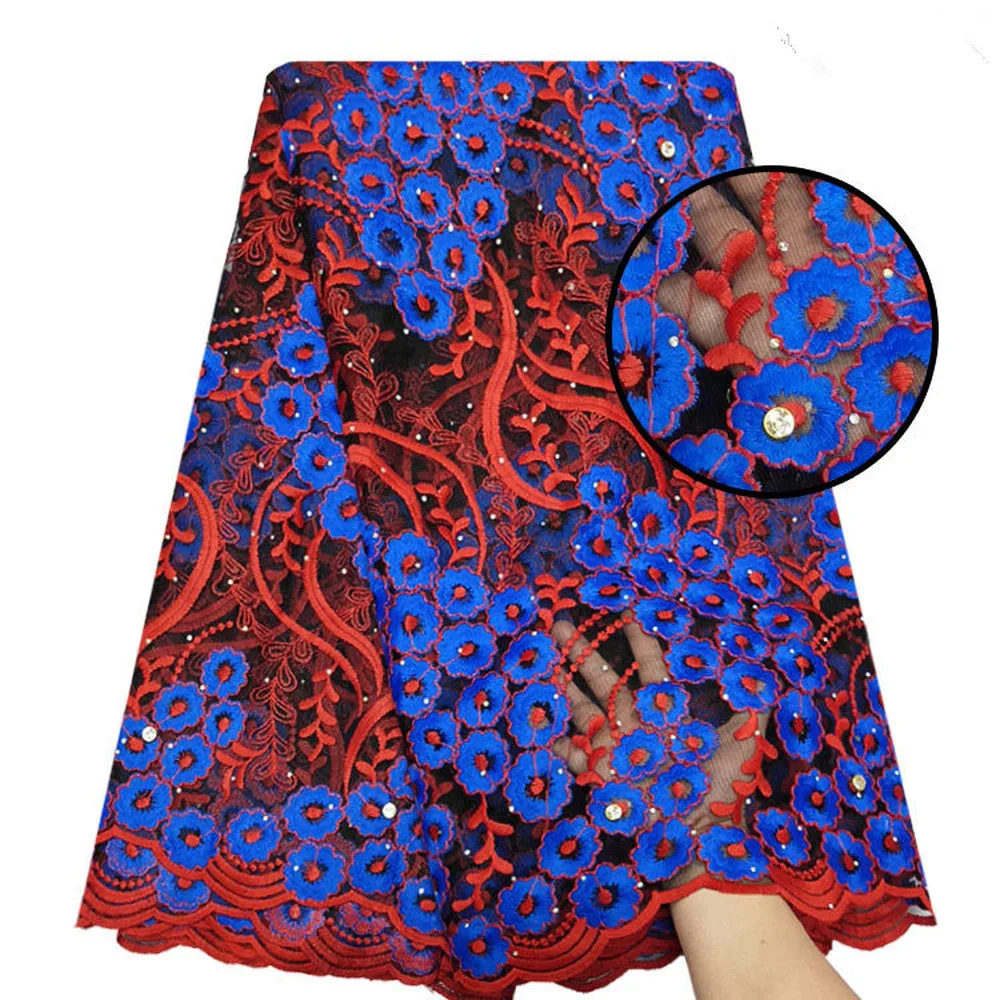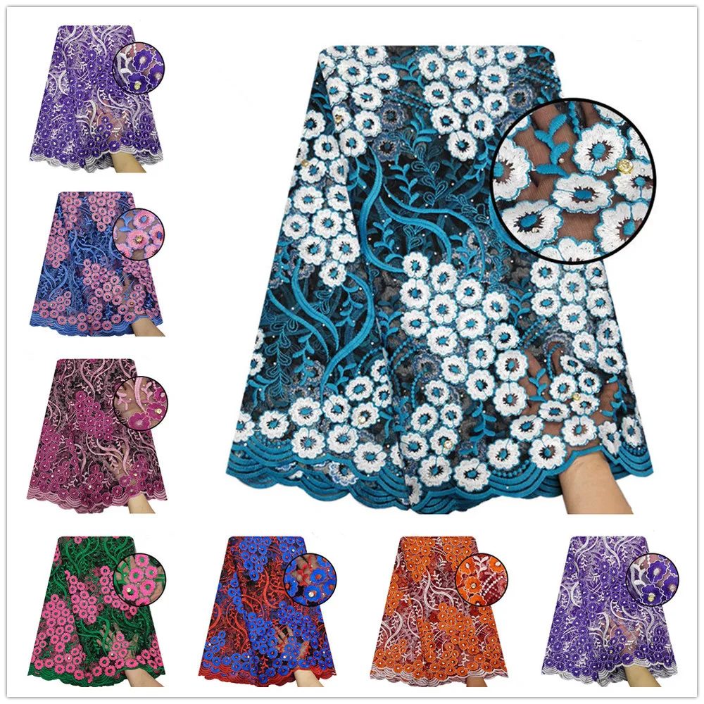 5yards Brand New Stones Lace Fabric Tulle Embroidered Women Dress Lace Fabric Africa Flower Embroid